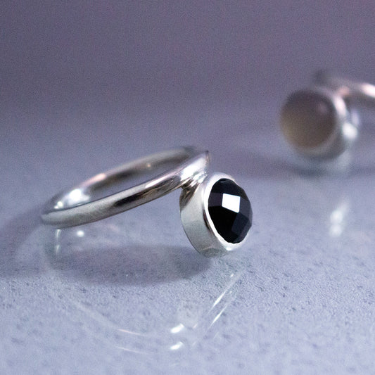 Oval Ring SV925 オーバルリング シルバー 天然石 gray onyx グレーオニキス